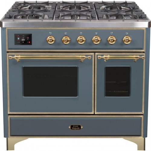 ILVE Majestic II 40″ Dual Fuel Natural Gas Freestanding Range in Blue Grey with Brass Trim UMD10FDNS3BGG