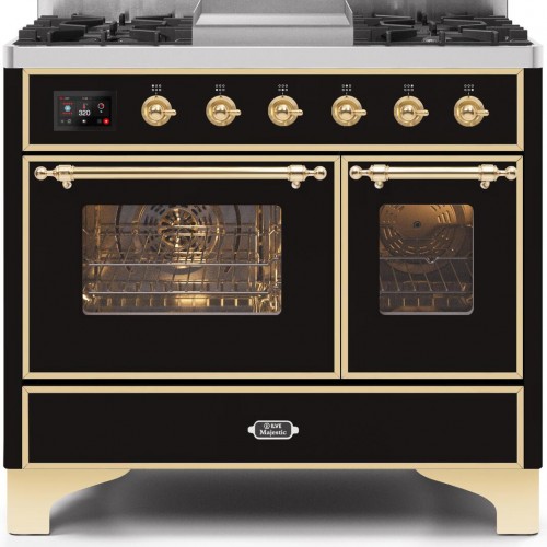 ILVE Majestic II 40″ Dual Fuel Range Glossy Black Brass Trim UMD10FDNS3BKG