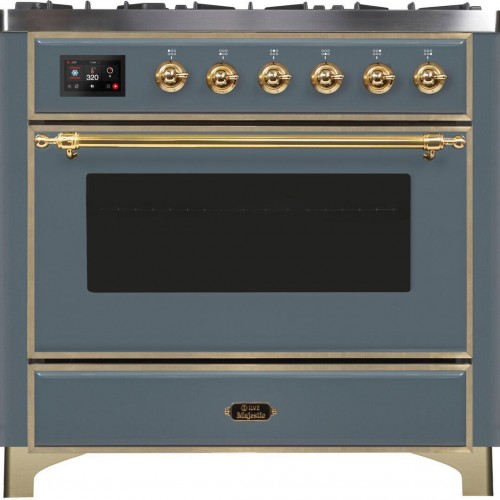 ILVE Majestic II 48 Inch Dual Fuel Natural Gas Freestanding Range in Blue with Brass Trim UM12FDNS3MBG