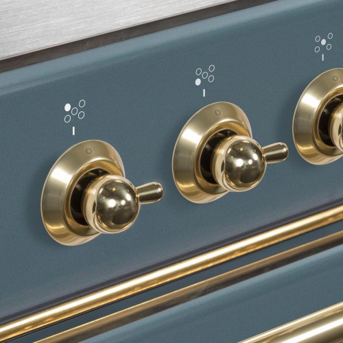 Ilve Majestic II 48 Inch Dual Fuel Natural Gas Freestanding Range in Blue Grey with Brass Trim, UM12FDNS3BGG