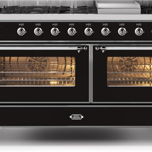 ILVE Majestic II 60 Inch Dual Fuel Natural Gas Freestanding Range in Glossy Black with Chrome Trim UM15FDNS3BKC