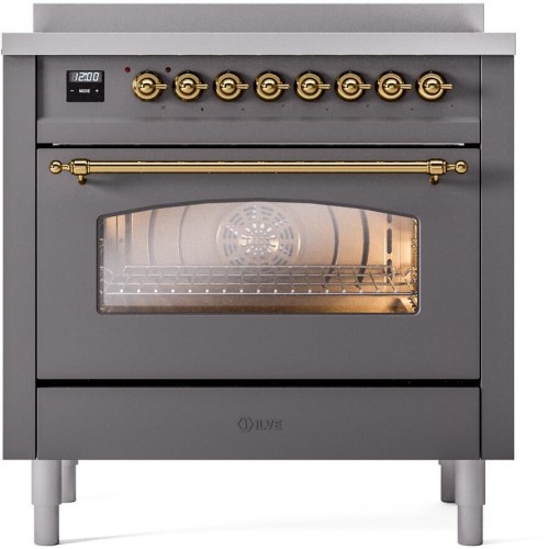 ILVE Nostalgie II 36″ Electric Range, Matte Graphite, Brass Trim UPI366NMPMGG