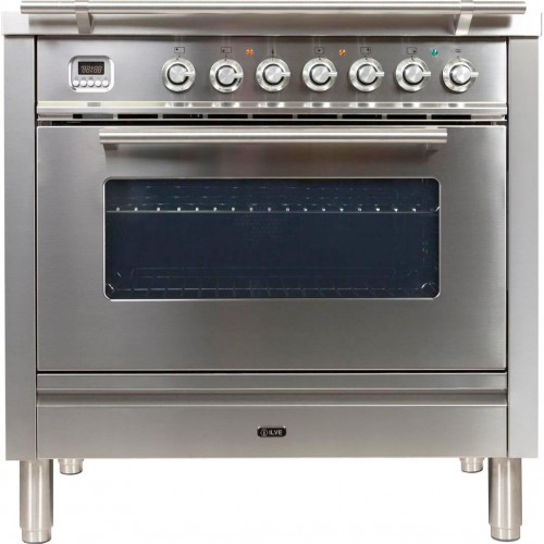 ILVE Professional Plus 36 Inch Dual Fuel Liquid Propane Freestanding Range in Stainless Steel with Chrome Trim UPW90FDMPILP