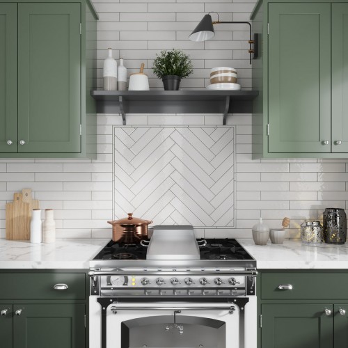 Glossy white ceramic tiles provide longevity and maintain their sheen for years.