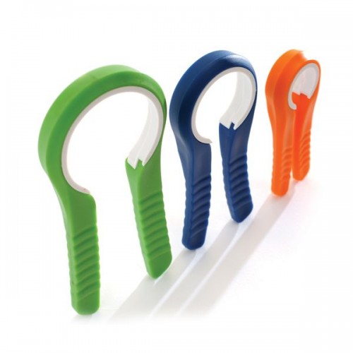 Non-slip grip opens jars and bottles with minimum effort.
