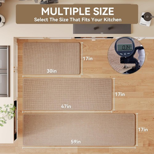 - Multi-purpose: Kitchen mats for floor widely used for home decor, in front of sink, indoor front welcome mat, living room, back doors etc.We provide two sizes to choose from: 17″x30″, 17×47″,17×59″