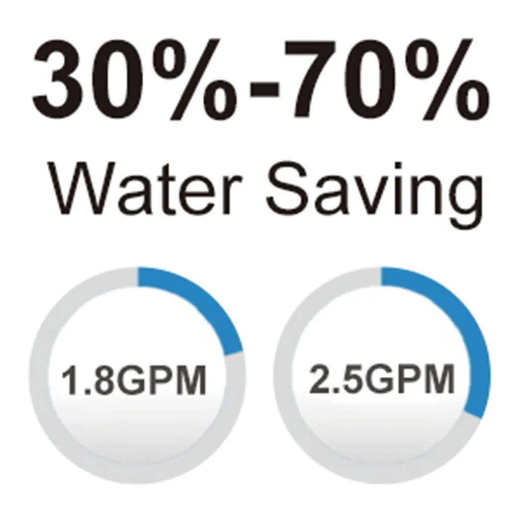 2 Water Flow Design – Soft Bubble Stream and Strong Spray(1.8GPM)