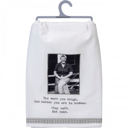 Kitchen Towel – If A Cookie Falls On The Floor features a stitched art panel featuring a vintage photograph, “If A Cookie Falls On The Floor And You Pick It Up…That’s A Squat, Right?” sentiment, and gingham ribbon trim.