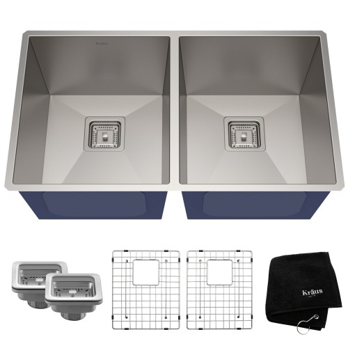- FREE Accessories: Multi-functional dish grids (x2) protect the bottom of the sink, 3 piece basket strainer set, drain assembly with strainer, premium KRAUS kitchen towel