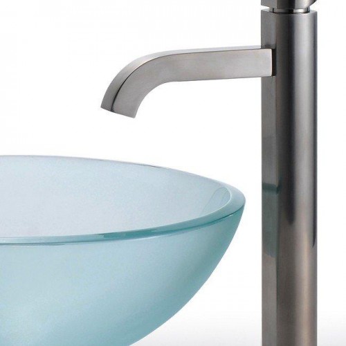 KRAUS Clear 14″ Glass Vessel Sink and Ramus Faucet Chrome