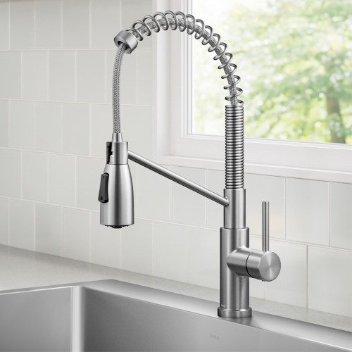 - COMMERCIAL FAUCET DESIGN: Featuring an open coil spring spout for a professional look with universal appeal, the Coda pull down faucet is an ideal budget-friendly choice for any kitchen or laundry room remodel