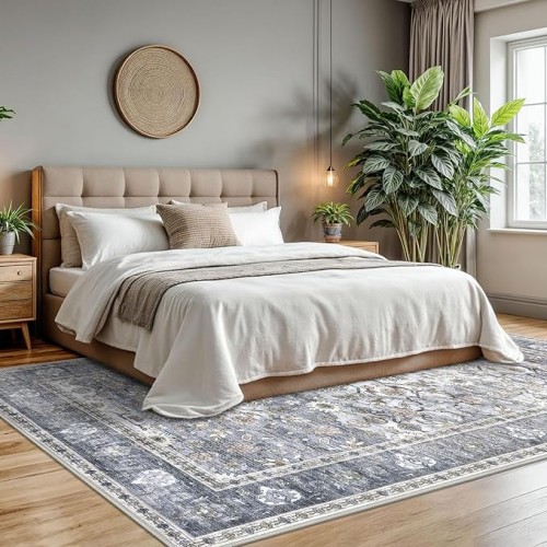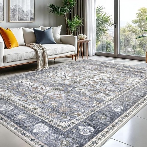 KUTA 5×7 Area Rugs, Vintage Washable Rugs for Living Room Black Grey Orange Ultra Thin Soft Non-Slip Printed Distressed Traditional Farmhouse Carpet for Bedroom Dining Room Dorm Office Home