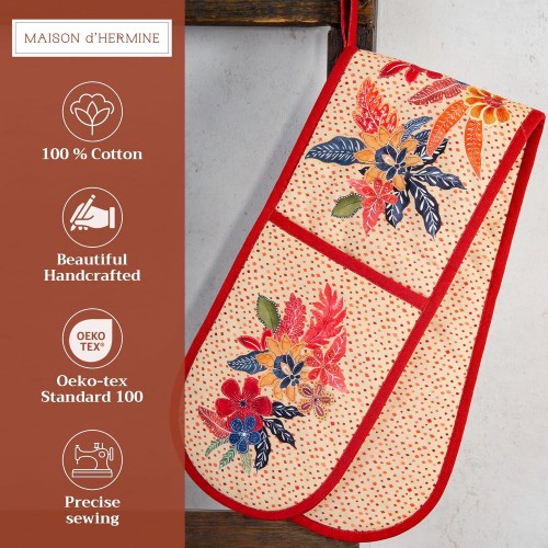 Maison d’ Hermine Double Oven Mitts 100% Cotton 7″x35″ Double Oven Mitt Heat Resistant BBQ Cooking Gloves with Loop, Baking, Grilling, Home, Kitchen, Handling Hot Pans (Kalahari)