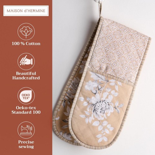 - 100% Quilted cotton: Crafted from premium quilted cotton for superior heat resistance and durability. This double oven mitt offers a soft, flexible grip and protects your hands during baking, roasting, or grilling