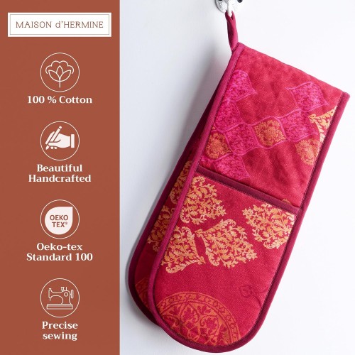 Maison d’ Hermine Double Oven Mitts 100% Cotton 7″x35″ Double Oven Mitt Heat Resistant BBQ Cooking Gloves with Loop, Baking, Grilling, Home, Kitchen, Handling Hot Pans (Versailles)