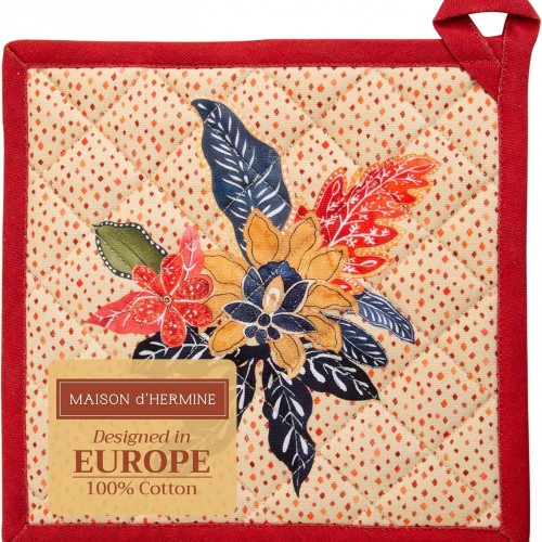 Maison d’ Hermine Pot Holders Set 100% Cotton Heat Resistant Potholders 8″ x 8″ Hot Pads with Loop BBQ, Cooking, Baking, Grilling, Kitchen, Handling Hot Pans (Pack of 2, Cachemire)