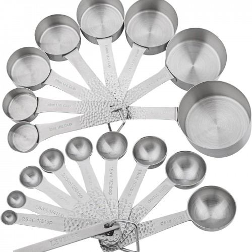 - ✱✱ Every stainless steel measuring cups and spoons set: this measuring set has the accurate measurements size in US and Metric engraved on the handle clearly, what will help you reduce any measuring errors for cooking or baking! for dry measuring cups and liquid measuring cups in kitchen!