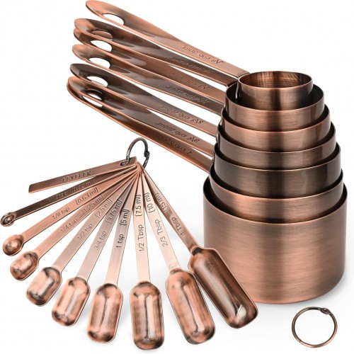 Measuring Cups and Spoons Set, Copper Measuring Cups and Spoons Set 17, Stainless Steel Measuring Cups and Spoons set, Metal 7 Measuring Cups and 9 Measuring Spoons with 1 Leveler for Kitchen