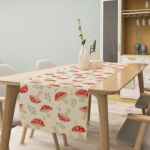 Mushroom Table Runner,Vintage Plant Print Table Runner for Kitchen Dining Table Home Party Decoration 13×108 Inch