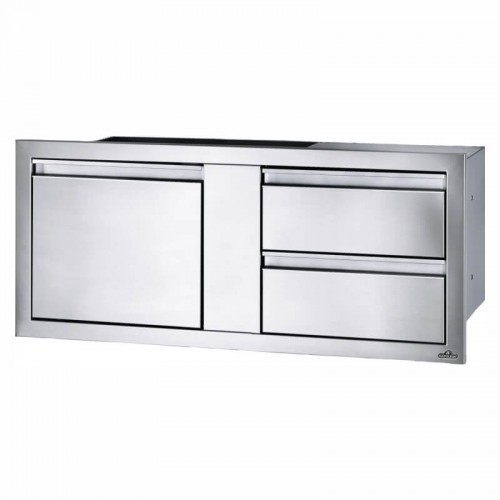 Crafted from carbon-colored, powder-coated galvanneal steel, this cabinet is built to last, even under the harshest outdoor conditions. The two-coat pebbling finishing system ensures added durability, while the stainless steel drawer fronts provide a stylish and modern look.