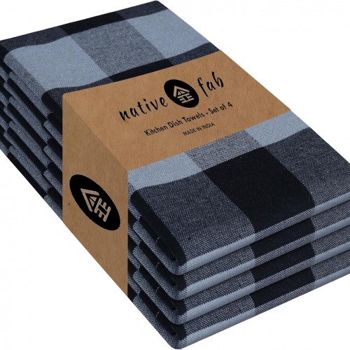 Native Fab 6 Pack Buffalo Check Kitchen Towels16 x26 – Cotton Dish Towels Washable – Absorbent Tea Towels, Soft Hand Towel with Hanging Loop, Dish Cloth Set – Beige White