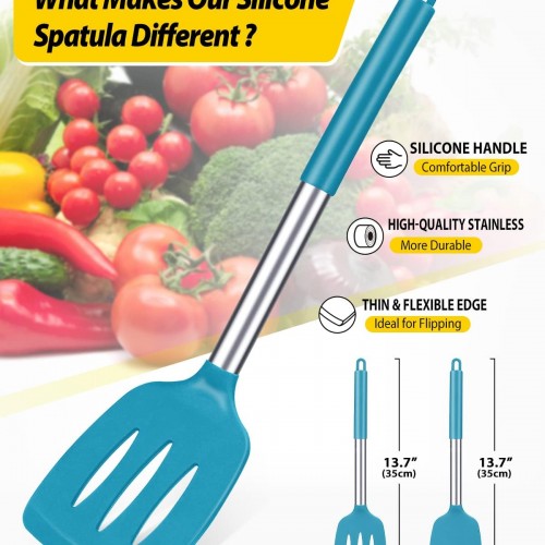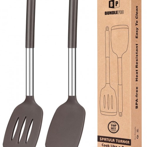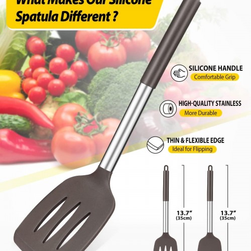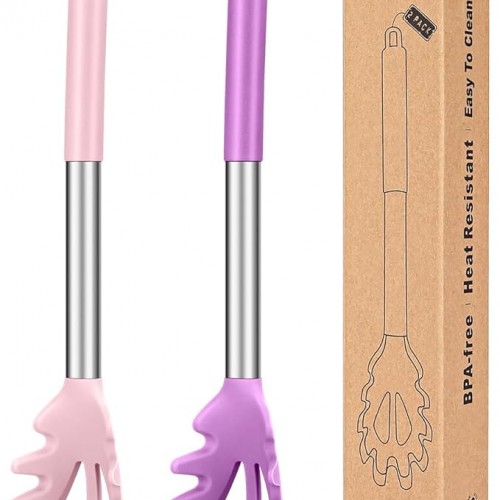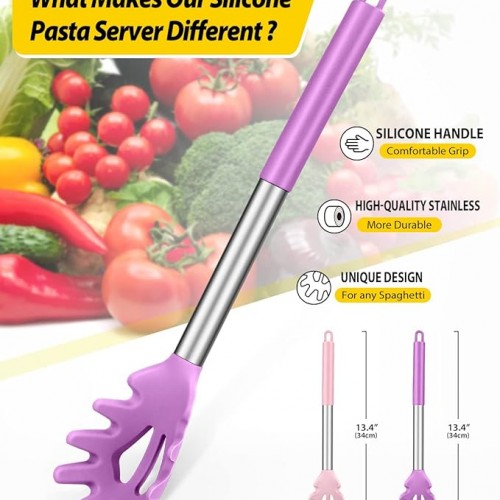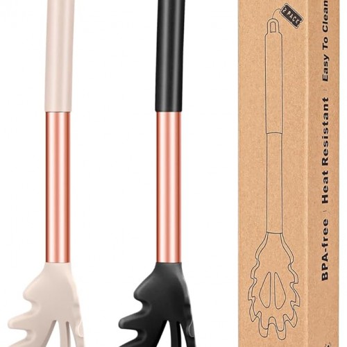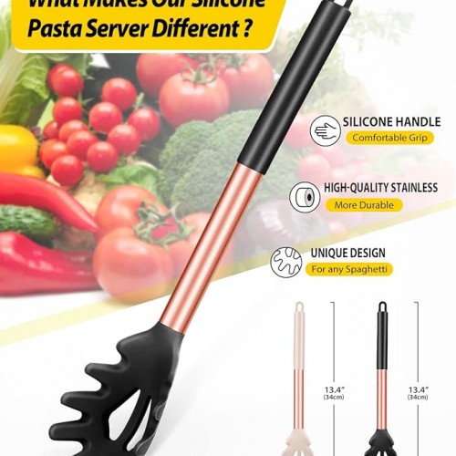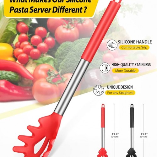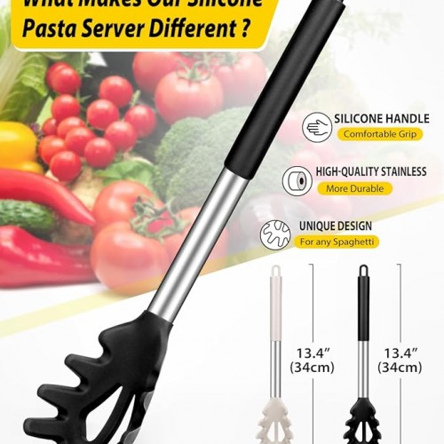 Pack of 2 Silicone Pasta Fork, Kitchen Heat Resistant Noodle Spoon Server, BPA Free Spaghetti Strainer, Best Cooking Tools (BLACK-KHAKI)