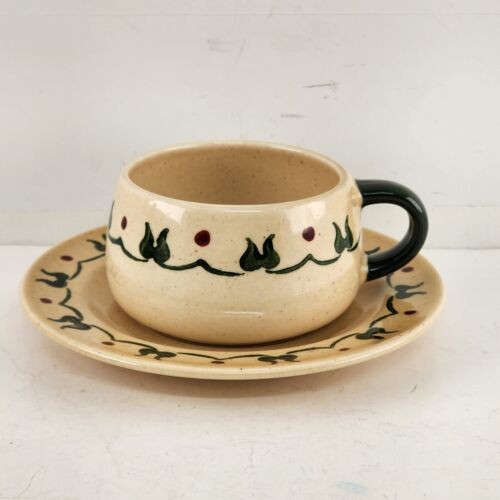This two-piece set of a cup and plate is a charming addition to your collection. Made in California in the late 20th century, this original Poppytrail Homestead Provincial set by Metlox features a decorative poppy pattern on a round, beige stoneware and ceramic material. The glossy finish adds to the mid-century modern style and the handmade production technique makes each piece unique. This cup and saucer set is perfect for all occasions and has no manufacturer warranty. It weighs 14 oz and has a plate diameter of 10 inches. The care instructions state that it must be hand washed only. This Provincial set is a must-have for any Metlox or pottery enthusiast.