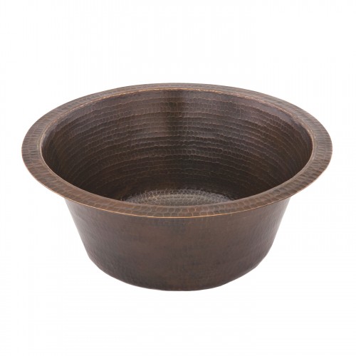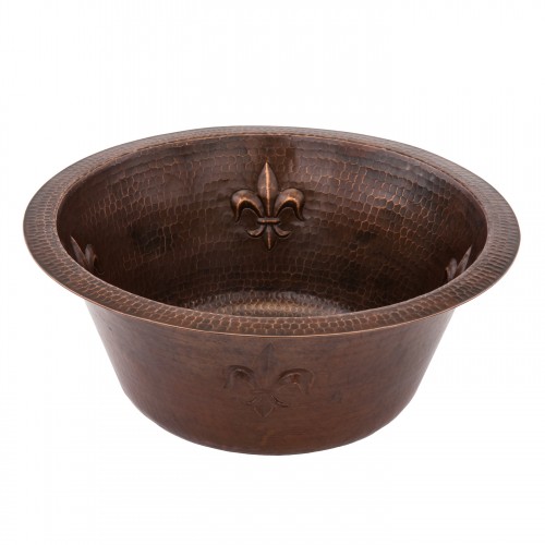 Premier Copper Products 16″ Round Copper Bar Sink with Fleur De Lis and 2″ Drain Size