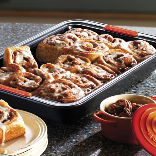 Baking homemade cakes and breads is a joy with this rectangular cake tin. The classic shape makes it a winner, whatever your recipe. And the heat resistant silicone handles make lifting your creations in and out of the oven safe and easy.