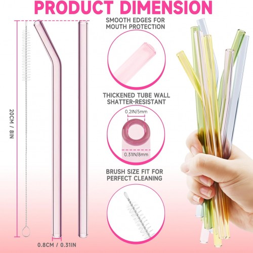 - Easy To Clean—The glass straws are dishwasher safe. You can also easily clean these straws with the included straw cleaning brush, the brush is 8” in length, long enough to clean the entire straw. The color of the straws will remain vibrant after each cleaning