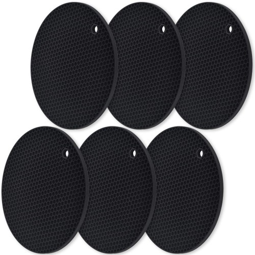 - Trivets Set: Our trivet set includes 5 hot dish trivets in different colors, 10 inches in diameter and 0.35 inches thick. Comes with 10.3 inches diameter storage basket, great for storing those pot holders. Also great used as hold keys, remote controls, pens, stationary, supplies, etc. or be used as a fruit basket
