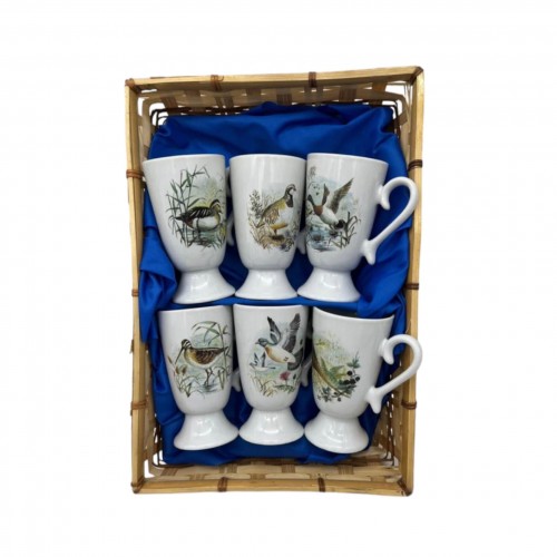 - Set of 6 French mazagran beakers, each with a unique game bird motif