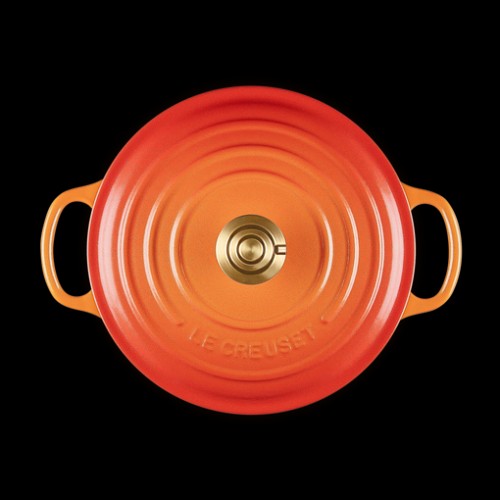 - First forged in 1925, our timeless Enamelled Cast Iron Round Casserole is indispensable in kitchens worldwide. Expertly crafted by French artisans, it offers everyday versatility and superior results. The limited-edition Flamme Dorée celebrates the iconic colour that started it all. An eternal flame that will shine bright in your kitchen for years to come.
