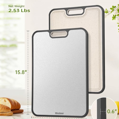 - 2-in-1 Cutting Board: Features food grade 304 stainless steel and wheat straw PP, perfect for separating meat and vegetable prep