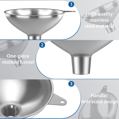 Stainless Steel Funnel with 30 Mesh Filter Food Grade Metal Funnel for Kitchen, Liquids, Oil, Powder, Wide Mouth Bottles, Home Brewing