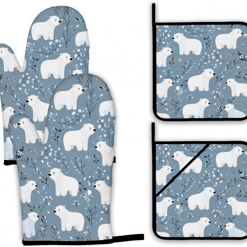 Starry Night Moon Oven Mitts and Pot Holders Set,Village Kitchen Oven Gloves and Pot Holder with Heat Resistant Non Slip for Cooking Baking Grilling(4 Piece Set)