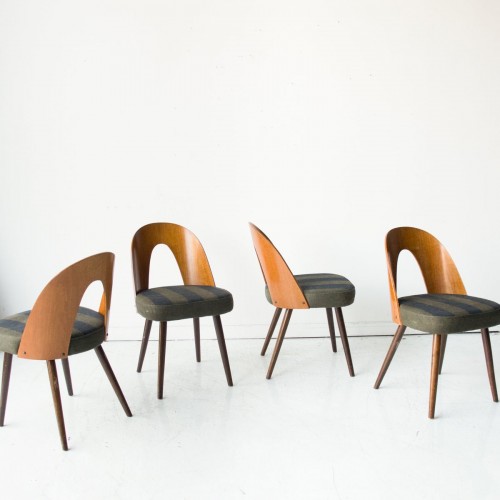These dining chairs are a striking example of Czechoslovak mid-century modern design, created in the 1960s by Antonín Šuman for the renowned manufacturer Tatra Nábytok.