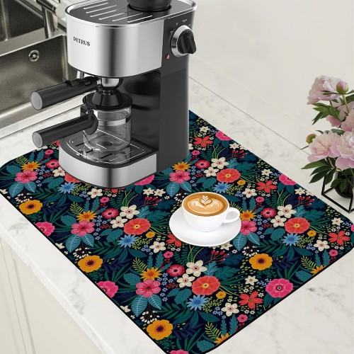 Teal and Grey Abstract Art Dish Drying Mat for Kitchen Counter Hide Stain Absorbent Coffee Mat Rubber Backed Drying Rack Pad Espresso Machine Coffee Bar Accessories 15.7 x 23.6 Inch