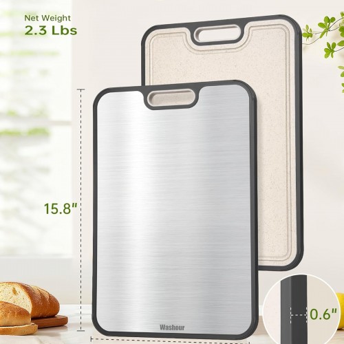 - 2-in-1 Cutting Board: Features 99.9% pure titanium and wheat straw PP, perfect for separating meat and vegetable prep
