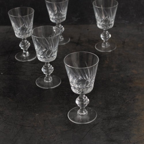 A curated set of three vintage crystal wine glasses sourced from a flea market in Pézenas, France. Each piece features hand-cut detailing that catches light beautifully, showcasing the craftsmanship of an earlier era. The crystal construction offers both durability and elegance—a refined addition to any vintage tableware collection.