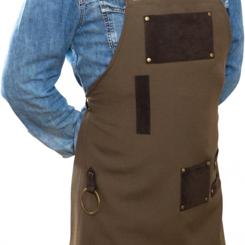 - PROFESSIONAL STYLE – This apron is a true workwear, fitting most bodies and activities, offering you great comfort, durability and functionality. It has clean design, with many utility pockets: easy access phone and pencil pockets on the front chest, and large hand pockets to fit all the tools and accessories that you need. Rustic green apron for a trendy look, and functional & stylish gun-metal hardware.