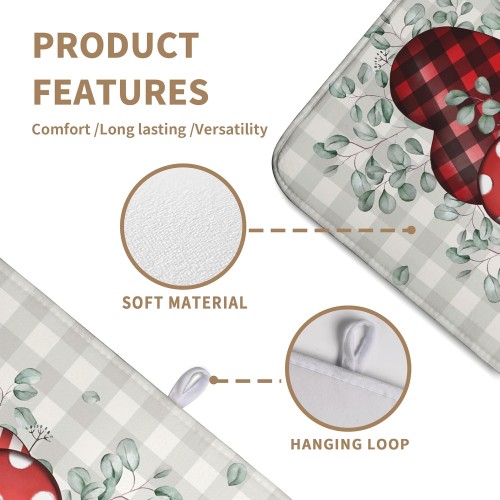 Valentines Day Dish Drying Mat Valentine Buffalo Plaid Eucalyptus Hearts Dishes Dryer Pad for Kitchen Countertops Microfiber 18×24 Inches