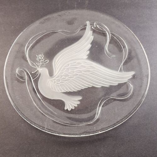 Hand Blown Clear Art Glass Pedestal Cake Plate Red Green Swirls