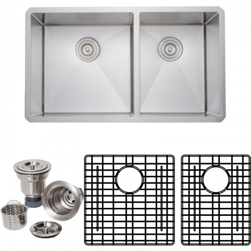 Wells Sinkware 33″ 16-Gauge Undermount 50/50 Double Bowl Stainless Steel Kitchen Sink