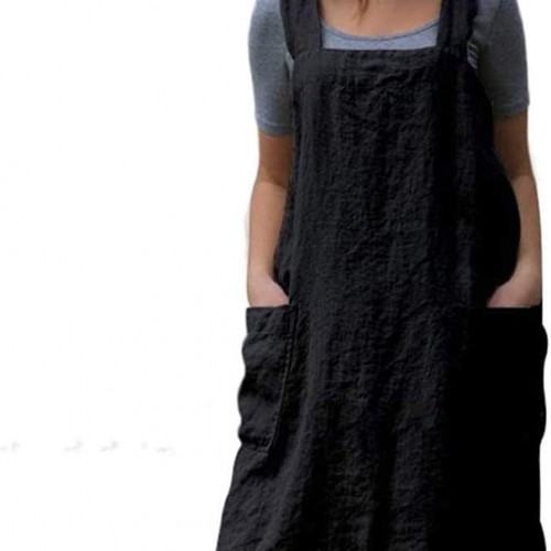 YESDOOD Cotton Linen Apron Cross Back Apron for Women with Pockets Pinafore Dress for Baking Cooking