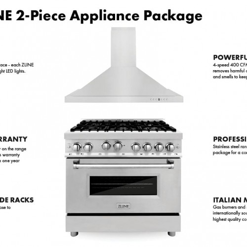 ZLINE 36″ Bundle Range RA36 & Wall Range Hood KB-36, 2KP-RARH36