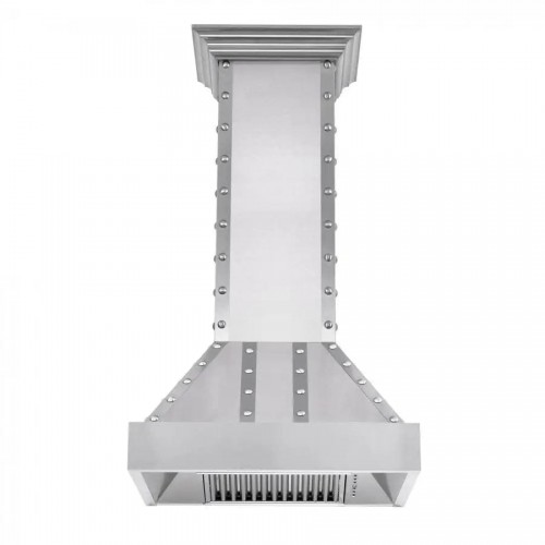 All ZLINE range hoods come equipped with everything needed to easily install and use, including a 36-inch chimney with crown molding. This hood will fit most ceilings up to 10 feet, though the chimney is designed to be cut to fit lower ceilings.