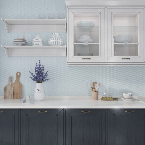 Light Turquoise 12×12 Glossy Penny Round Porcelain Mosaic Tile (10 pack, 9.87 sq ft/case) Full