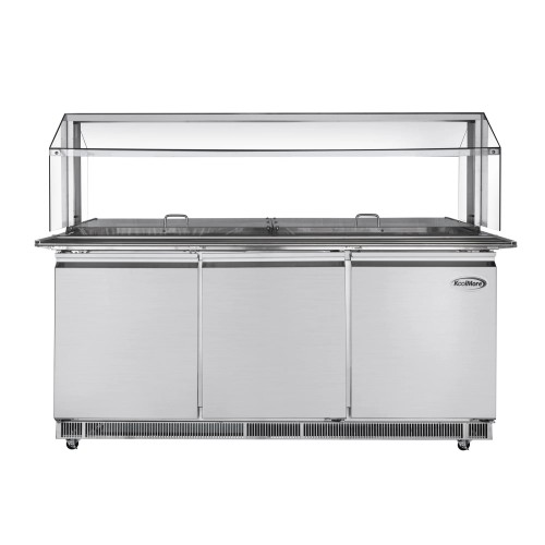 Koolmore KM-RBT-72CSFG | 72″ Wide 15 Pan Prep Table w/ Sneeze Guard