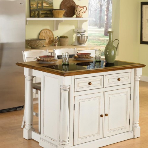 Traditional Kitchen Island Set By Monarch Off-White 25″D x 48″W x 36″H Wood, Granite